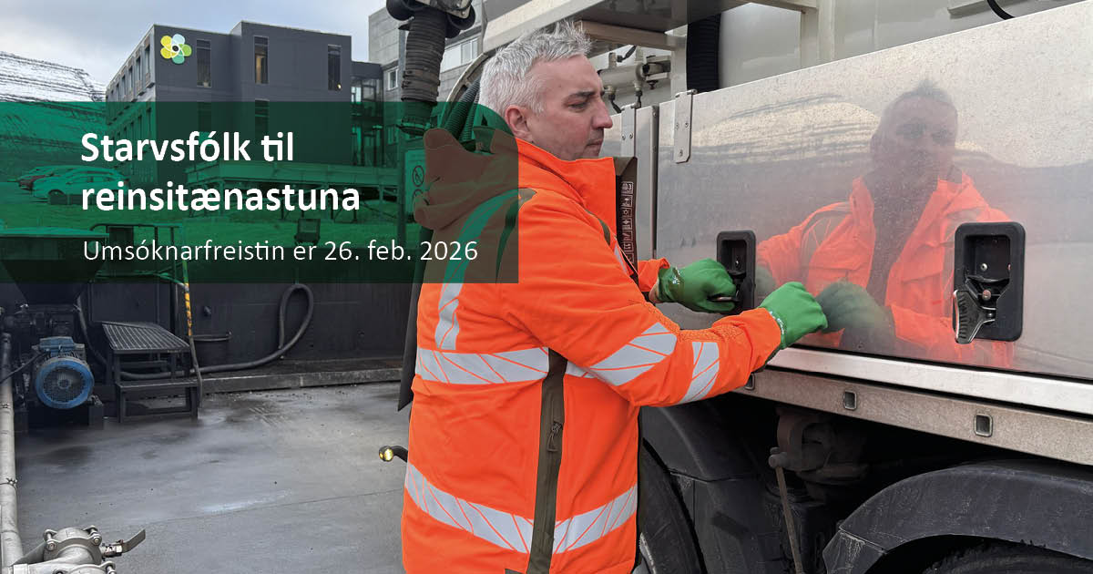 Um tú vilt vita meira um starvið ert tú vælkomin at venda tær til Duritu Toftegaard, leiðara fyri Innsavning og reinsitænastu á tlf. 234223 ella Andrias Joensen, tekniskan leiðara á tlf. 234214.
